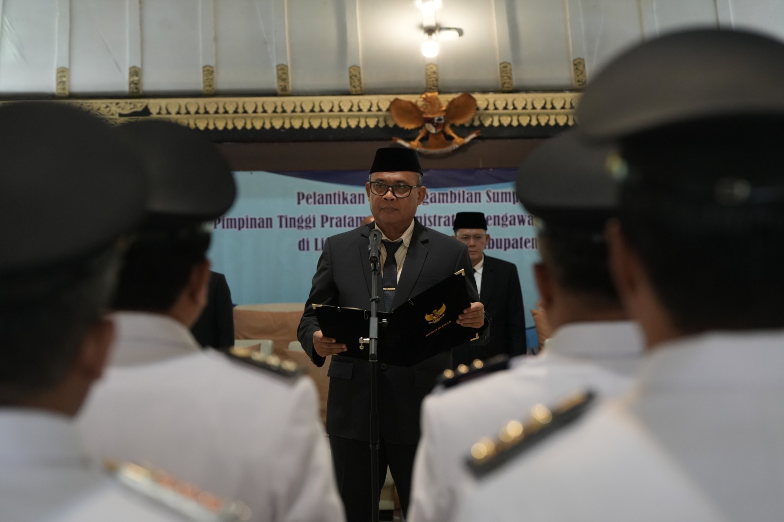 SLEMAN, voicejogja.com – Bupati Sleman Harda Kiswaya melantik dan mengambil sumpah janji jabatan terhadap 190 Pejabat di lingkungan Pemerintah Kabupaten Sleman. Prosesi pelantikan berlangsung khidmat di Pendopo Parasamya Kabupaten Sleman, Selasa (21/4/2026) sore.