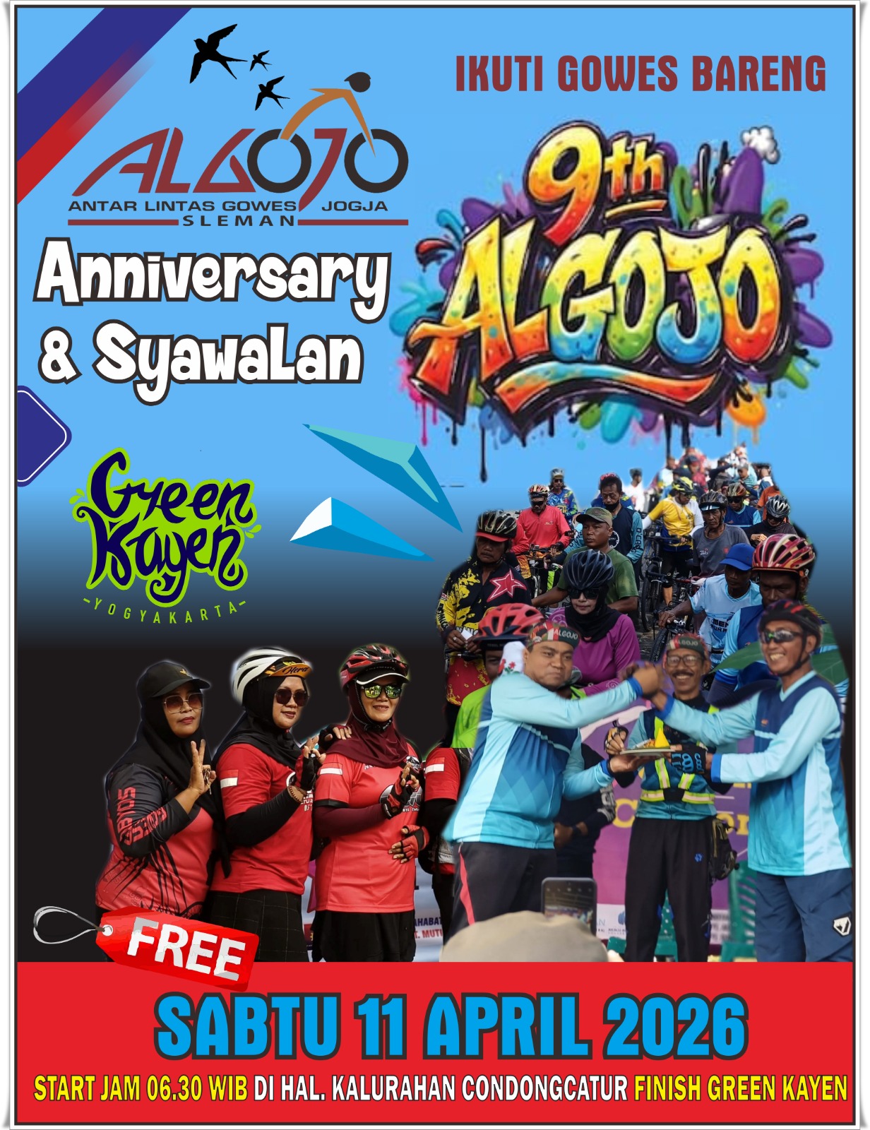 “Selain untuk memperingati ulang tahun ALGOJO ke-9 dan Syawalan, kegiatan ini juga menjadi ajakan kepada masyarakat untuk membudayakan olahraga bersepeda serta mendukung gerakan tolak narkoba,” ujar Wasana.